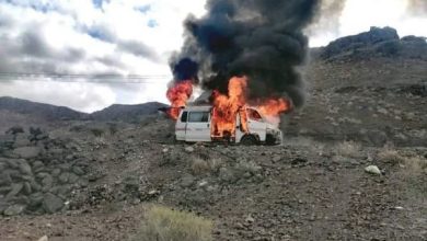 نشوب حريق في حافلة تقل مسافرين بلحج