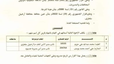 محافظ محافظة جنوبية يصدر قرار تكليف جديد