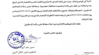 ايقاف جميع الرحلات المحلية والدولية بهذه المحافظة