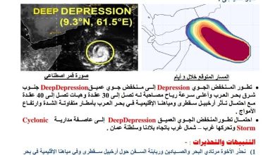 إشعار رقم ((2)) يصدره مركز الإنذار المبكر بحضرموت حول مستجدات الحالة المدارية في بحر العرب