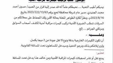 أمن مركز الفيوش يصدر توجيه للمحلات التجارية والمطاعم، تعرف عليه.