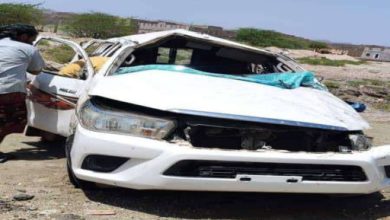 حادث مروري يودي بحياة ضابط بقوات العمالقة الجنوبية ويجرح عدد من مرافقيه.
