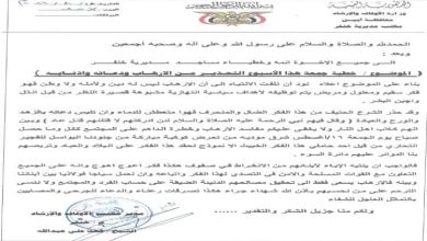 مكتب الأوقاف بأبين يصدر تعميم بتحذير أئمة وخطباء المساجد من الإرهاب ودعاته واذنابه