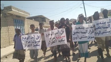 وقفة احتجاجية تطالب بتغيير مدير عام مستشفى الوضيع بأبين