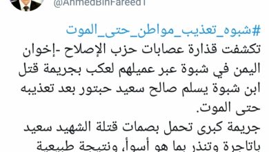 العولقي : لم يحدث في تاريخ شبوة إعدام مواطن ميدانيا أو اختطاف جريح وتصفيته إلا في عهد مليشيات الإصلاح