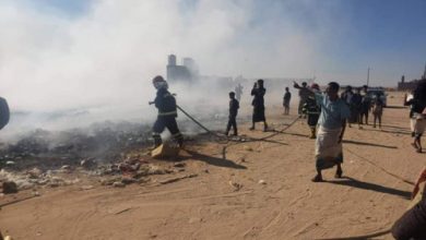 إخماد حريق بجوار سوق القات بهذه المحافظة
