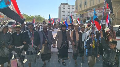 حشود أبناء ردفان تصل إلى مخيم الاعتصام في عتق