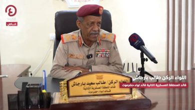 قائد المنطقة العسكرية الثانية بحضرموت لـ«العين الإماراتية مخططات الفتنة تهاوت والحوثي والقاعدة مولوا التحركات الأخير بالمكلا