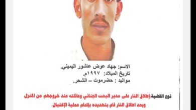 مكافأة مالية للإدلاء بأي معلومة عنه.. شرطة ساحل حضرموت تنشر تعميما بمطلوب أمني