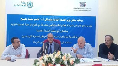 النقابي الجنوبي / عدن / إعلام الصحة دشن وكيل وزارة الصحة لقطاع الطب العلاجي الدكتور شوقي الشرجبي ومدير عام مكتب الصحة العامة والسكان بالعاصمة عدن الدكتور أحمد مثنى البيشي الدورة التدريبية في بناء قدرات العاملين الصحيين في المرافق الصحية…