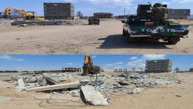 بتوجيهات الحالمي وحدة حماية الأراضي بعدن تزيل بناء عشوائي على أرضية أحد المواطنين في بئر فضل