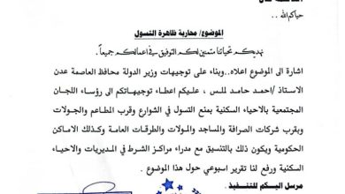 اصدر مدير عام الإدارة للجان المجتمعية بالعاصمة الجنوبية عدن العميد/ علي احمد النمري توجيهات بمنع التسول في الطرقات والشوارع والمطاعم والمولات في العاصمة عدن واصدر العميد( علي احمد النمري) قراره بتاريخ« 2» اكتوبر 2024م، وموجها لرؤوساء اللجان المجتمعية بالمديريات يقضي…