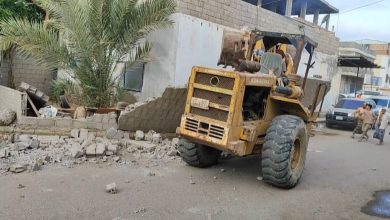 وحدة حماية الأراضي تزيل بناء عشوائي بمنطقة عمر المختار بالعاصمة عدن