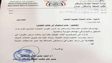 مكتب الصحة عدن يصدر قرارا بمنع استقبال حالات مرضى اصيبوا بمرض خطير.. وثيقة