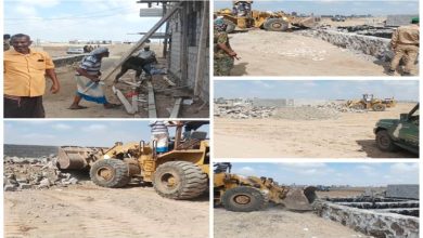 وحدة التدخل بقضايا أراضي العاصمة عدن تنهي تجاوزات عشوائية في الشيخ عثمان