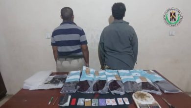 الحزام الأمني بعدن يضبط شخصين بحوزتهما 7 كيلو جرام ونصف من مادة الحشيش المخدر