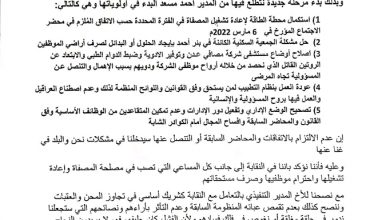 مجلس اللجان النقابية لشركة مصافي عـدن يصدر بيانه النقابي رقم (5) لعام 2022م