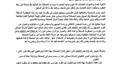 النقابي الجنوبي/ خاص أصدر مجلس اللجان النقابية لشركة مصافي عـدن اليوم، الخميس بياناً هاما حول قرار تعيين مدير جديد للمصافي والقرار الوزاري بشأن الية شراء المشتقات النفطية وحصر تسويقها وتوزيعها عبر شركة النفط متناسياً دور واهمية المصفاة واختصاصاتها. …