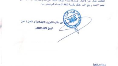 النقابي الجنوبي / خاص وجهت مؤسسة النقابي الجنوبي الإعلامية شكرها وتقديرها لقيادة القيادة المحلية بالعاصمة عدن ممثلة بالمهندس ” نزار هيثم ” رئيس الهيئة التنفيذية القيادة المحلية للعاصمة على إصدار قرار تكليف القيادية النقابية الجنوبية ” امتثال ابراهيم ”…