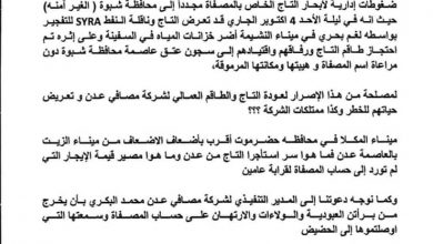 النقابي الجنوبي/ خاص اصدرت اللجنة العمالية لمصافي عدن بيان هام تستنجد فيه محافظ عدن والتدخل السريع لمنع تاج سقطرى الابحار الى شبوة كونها منطقة خطرة والى نص البيان بلاغ هام إلى من يهمه الأمر ضغوطات إدارية لأبحار التاج الخاص…