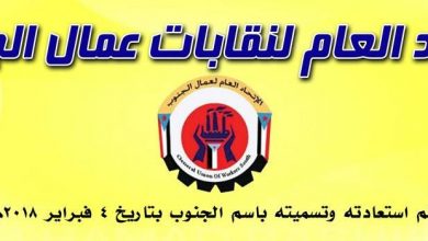 اللجنة التحضيرية لاتحاد نقابات عمال الجنوب تناقش الوضع النقابي في ضل المستجدات على الساحة الجنوبية وتدعوا للاجتماع يوم الأحد القادم والثلاثاء لانتخاب مكتب تنفيذي للعاصمة عدن
