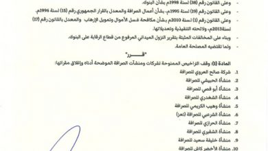 النقابي الجنوبي / خاص أصدر محافظ البنك المركزي أ. أحمد أحمد غالب قرار رقم (9) لعام 2025م، بشأن ايقاف التراخيص الممنوحة لعددٍ من شركات ومنشات الصرافة المخالفة والمثبتة بتقرير النزول الميداني المرفوع من قطاع الرقابة على البنوك. وشمل قرار…