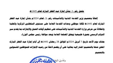 وزارة الخدمة المدنية تعدل موعد إجازة عيد الفطر المبارك