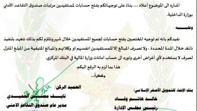 مسؤولون في وزارة المالية يعرقلون صرف معاشات المتقاعدين وزارة الداخلية والأمن السياسي لشهر فبراير 2024م