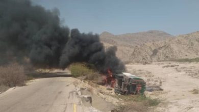وفاة سائق شاحنة وقود إثر انقلابها واحتراقها بأبين