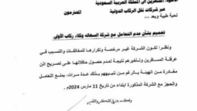 هيئة تنظيم النقل البري تمنع التعامل مع إحدى شركات نقل الركاب لمخالفتها للإجراءات