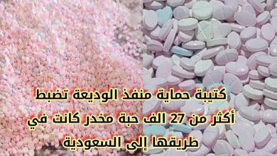 كتيبة حماية منفذ الوديعة تضبط أكثر من 27 ألف حبة مخدر كانت في طريقها إلى السعودية