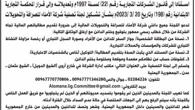 لجنة تصفية شركة الأمناء للصرافة والتحويلات المالية تصدر بيانا هاما
