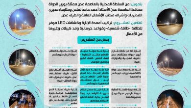 السلطة المحلية بالعاصمة عدن تنير غالبية طرقات المدينة بالطاقة الشمسية