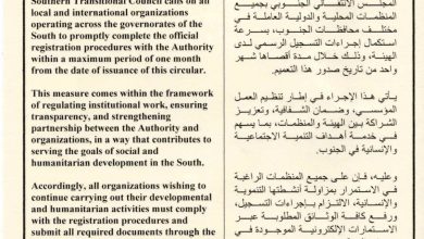 لتنظيم العمل المؤسسي.. دعوة للمنظمات إلى استكمال التسجيل لدى الانتقالي