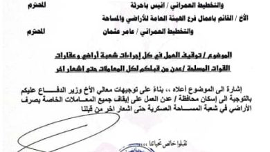 نائب رئيس هيئة الاركان اللواء الركن احمد البصر يوقف العمل في شعبة اراضي وعقارات القوات المسلحة