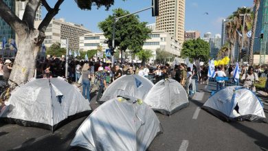 عائلات الأسرى الاسرائيليين تقيم “خيم” أمام مقر وزارة جيش الكيان الصهيوني