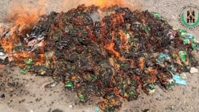 حزام لحج يتلف كمية كبيرة من شمة الحوت المهرب.