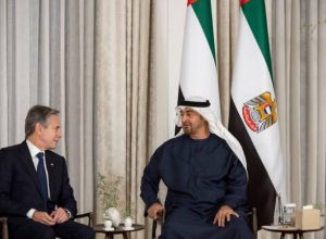 رئيس الإمارات يبحث مع وزير الخارجية الأمريكي فتح ممرات إنسانية إلى غزة.
