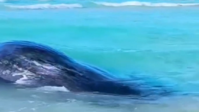 ظهور 4 حيتان عنبر نافقة على هذا الشاطئ