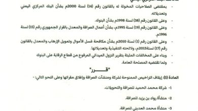 محافظ البنك المركزي يوقف تراخيص شركة ومنشآت صرافة