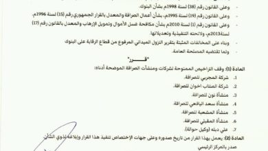 محافظ البنك المركزي يوقف تراخيص عدد من شركات ومنشآت الصرافة المخالفة