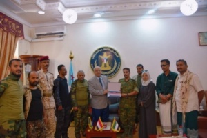 بتوجيهات من الرئيس عيدروس الزبيدي .. الوالي يكرم مدير عمليات مطار عدن الدولي مطلق عبدالله