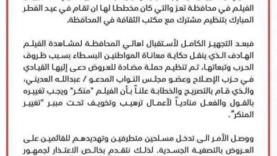 قيادي في الاصلاح يحرض ضد عرض فيلم 10 أيام قبل الزفة ويصفه بالمنكر
