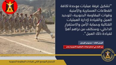 عاجل : الرئيس عيدروس الزُبيدي يعلن عن تشكيل غرفة عمليات موحدة لكافة القطاعات العسكرية و يعلن التعبئة العامة(نص الكلمة)
