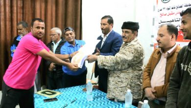 بحضور محافظ الضالع اختتام دورة تدريبية فئة( D) لمدربي كرة القدم لاندية المحافظة.