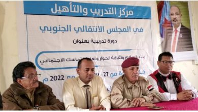 مركز التدريب والتأهيل بالمجلس ينظم دورة تدريبية حول بناء السلام وثقافة الحوار بمحافظة الضالع.