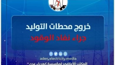 مؤسسة الكهرباء تحذر من دخول العاصمة عدن بظلام دامس.