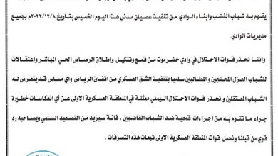 الهيئة التنفيذية المساعدة للقيادة المحلية انتقالي حضرموت تحذر قوات المنطقة الأولى من قمع وتنكيل المحتجين وتطالب بإطلاق سراح المعتقلين