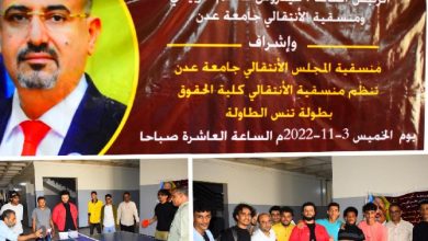 برعاية الرئيس الزُبيدي.. منسقية الانتقالي بكلية الحقوق تنظم لعبة “تنس الطاولة” لطلاب الكلية