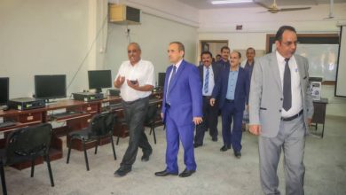 وزير التعليم العالي ومدراء مديريات ( دار سعد والتواهي) يُدشنون الامتحانات النهائية بكلية المجتمع